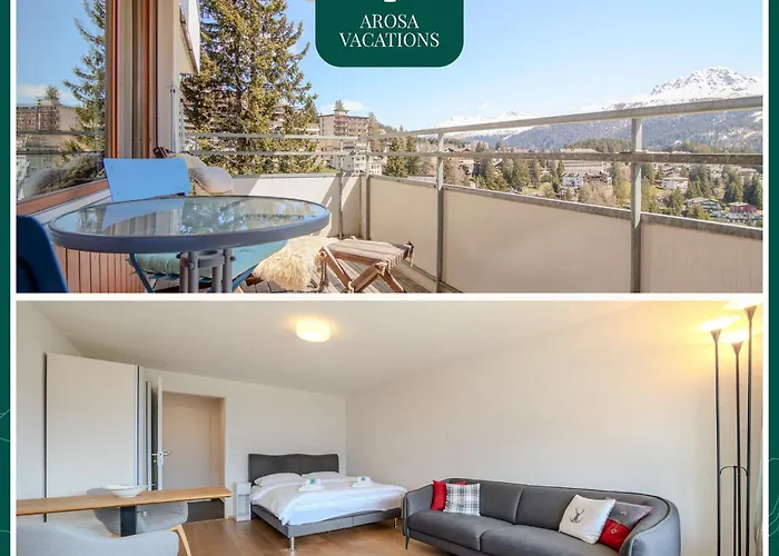 The 1-room Fortuna 4 By Arosa Vacations, Panoramablick Auf Die Berge Und Parkplatz Inklusive apartment is located about 500 metres from Arosa train station and about 5 minutes' walk from the Untersee lake. Staying in the apartment, nestled in the vicinity of the Eichhörnchenweg, guests can relax on a terrace.